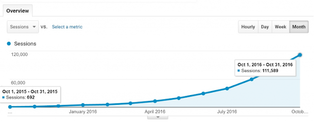 كما تلاحظ يزيد عدد مستخدمين الموقع باطراد خلال عام واحد لتصل الى 111 الف زيارة فى الشهر